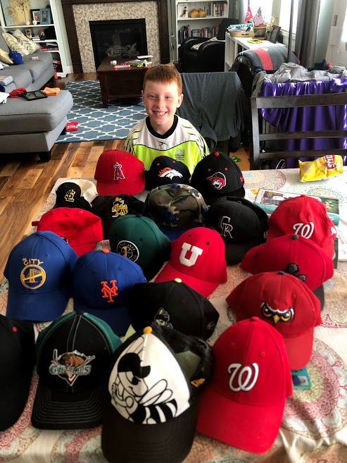Organizing Tate’s hat collection. (Of course every 8-year-old needs 21 hats.)