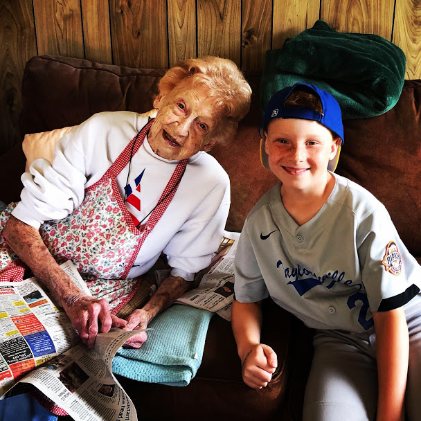 And where we got to eat lunch with 94-year-old Great Grandma, who lives across the street from the baseball fields. (Grandma was pretty happy about the visit. “You brought me french fries AND a diet coke?! How did you know these are my favorites?”)