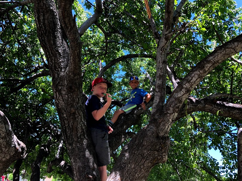 While I scouted our competition from the stands, Tate and Nolan found a shadier seat.